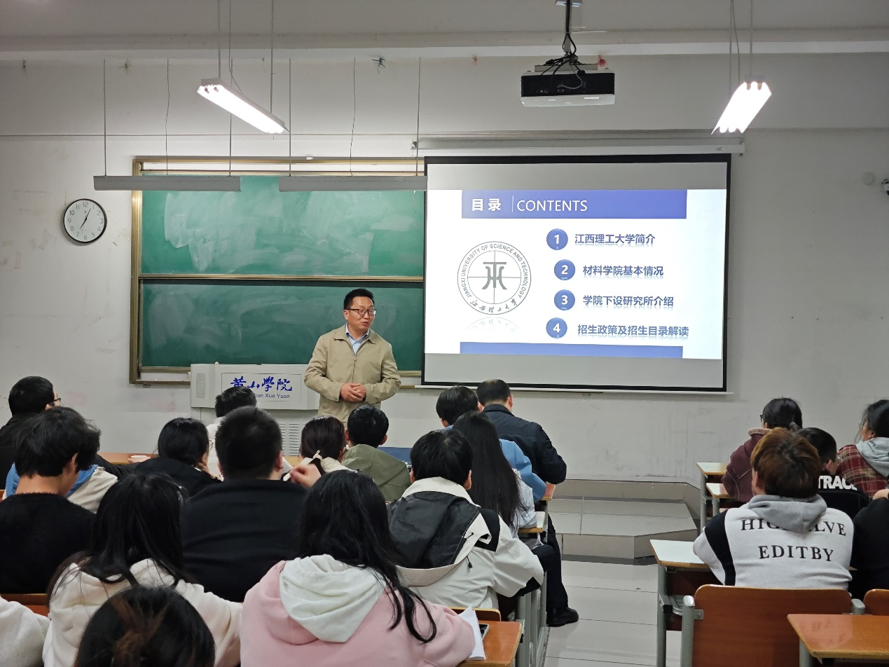 会议伊始,公司材料科学与工程专业教研室主任黄飞对姚文俐教授进行了介绍,并对姚文俐教授一行的到来表示热烈欢迎与衷心的感谢。姚文俐教授从公司规模、历史发展、团队队伍及办学成效等方面介绍了江西理工大学的概况。他详细阐述了江西理工大学材料科学与工程公司研究生的报考和招录情况,解读了最新的研究生招生政策,并重点讲解了研究生调剂过程中的注意事项,为同学们提供了宝贵的报考建议。