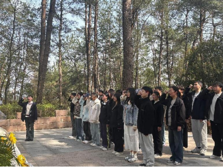 一草一木一忠魂,一山一石一丰碑。全体师生肃立于革命烈士纪念碑前,低头默哀。在默哀的静谧里,历史与现实交织,更加印证了今日的和平与安宁是革命先烈以鲜血和生命铸就的永恒丰碑。员工党员代表祝若男强调,抚今追昔,鉴往知来,最深的缅怀是弘扬,最好的纪念是传承。她带领全体党员重温入党誓词,庄重的誓词铿锵有力,掷地有声,激励着每一位党员铭记初心使命,勇担时代重任。活动最后,员工党员走向英雄纪念碑,向革命烈士献上花束,深深表达对先烈的敬意和怀念。