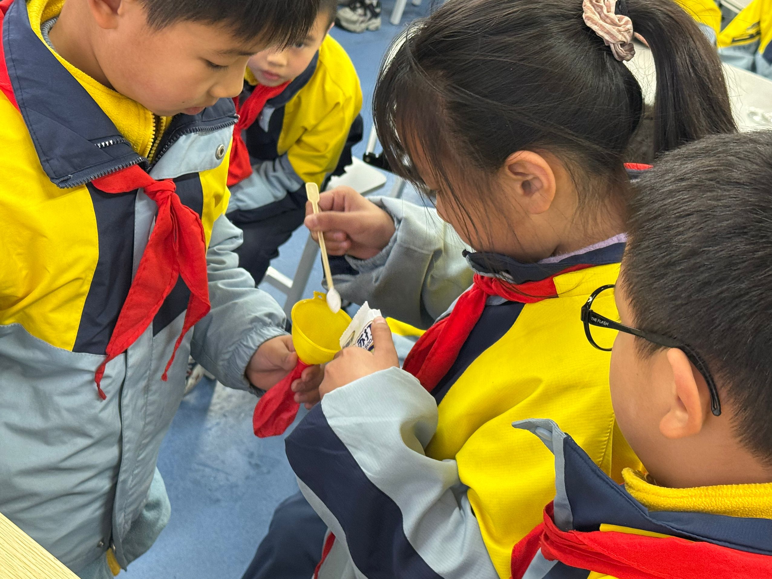 活动现场,志愿者们带来了多个妙趣横生的科学实验。在“‘吹’气球”实验中,志愿者将小苏打与酸混合,瞬间产生大量二氧化碳气体,气球迅速膨胀,神奇的变化让同学们惊叹不已。通过这个实验,同学们直观地了解了化学反应产生气体的原理。“水的表面张力”实验同样吸引了众多目光。志愿者小心地在水面上放置回形针等小物体,它们竟然能漂浮在水面而不沉下,这一违背日常认知的现象引发了同学们热烈讨论。志愿者借此深入浅出地讲解了表面张力的概念,让同学们感受到微观世界的奇妙。