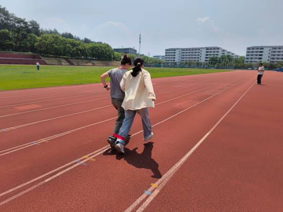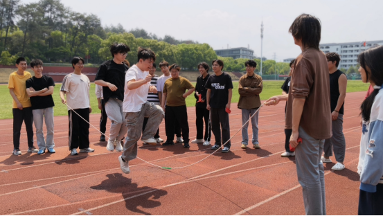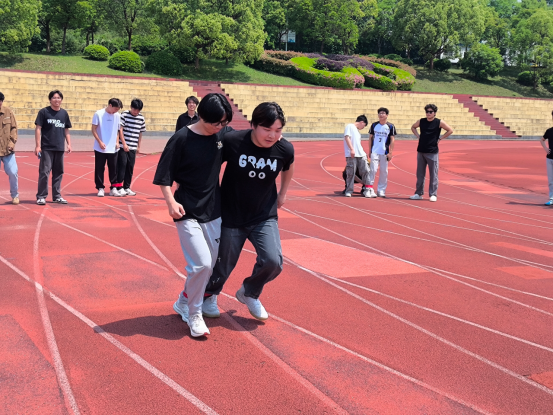 活动当天,同学们分成五个小组,每组八人,分别参与了“两人三足”和“团队跳大绳”两项团队合作游戏。在“两人三足”游戏中,同学们通过身体的协调配合,体会到了团队合作的重要性。每组选手在绑腿后需要相互配合,共同完成从起点到终点的冲刺任务。这一过程中,同学们不仅需要掌握节奏,还需要通过默契的沟通来避免失误,充分体现了户外教育在提升员工团队协作能力和实践能力方面的独特价值。