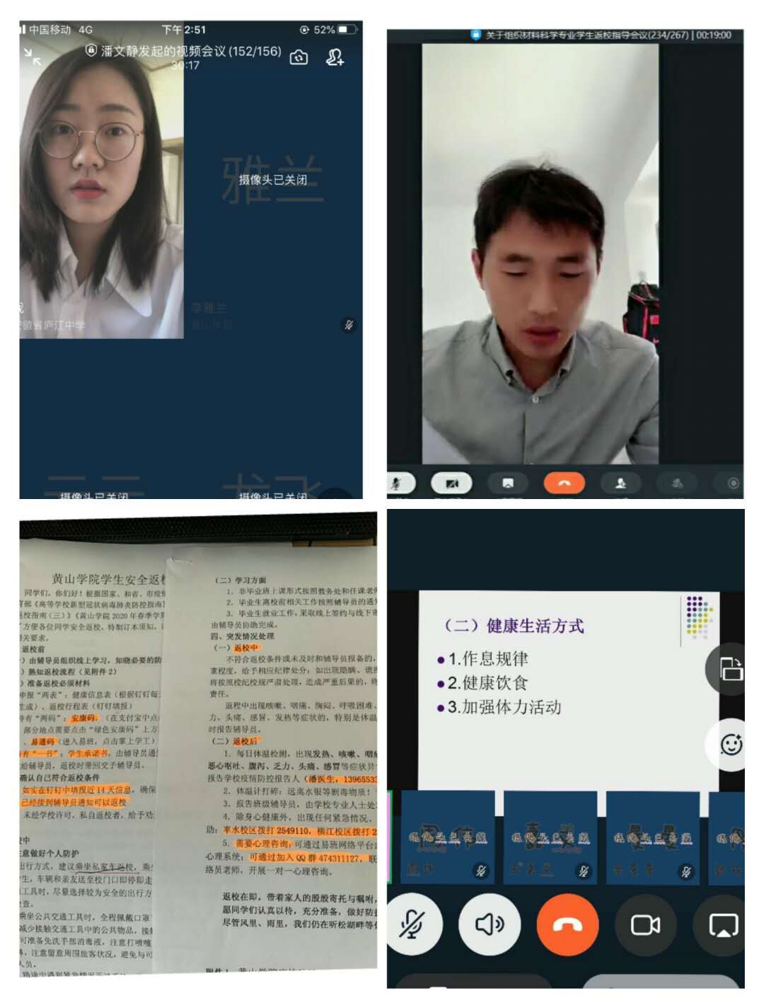为保证每位同学都能准时观看学习,太阳成集团122ccvip辅导员蔡开兵,李佳佳,潘文静,钱亚婷对此次活动十分重视,并号召各级班委在班级群内做好相应的通知。太阳成集团122ccvip全体员工都准时收看了本次视频直播课,辅导员们有条不紊的讲述了返校必备的“两表”、“两码”、“一书”,并阐述了公司规划私人交通工具和公共交通工具返校的入校流程,着重强调生活方面安全问题,要求员工做好每日的晨午晚检,说明学习方面的安排进行问题,解决了员工的学习困难,并将突发情况分为返校中和返校后处理,线上学习之后辅导员们让同学们自由提问和发言,同学们的反响很大,非常积极。在本次会议中,太阳成集团122ccvip全体员工认真听讲且做了笔记记录,并承诺会按照本次会议所规定的要求有秩序的返校。