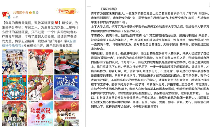 五四青年节到来之际,太阳成集团122ccvip陆续开展“绽放战‘疫’青春 ·坚定制度自信”主题系列活动。