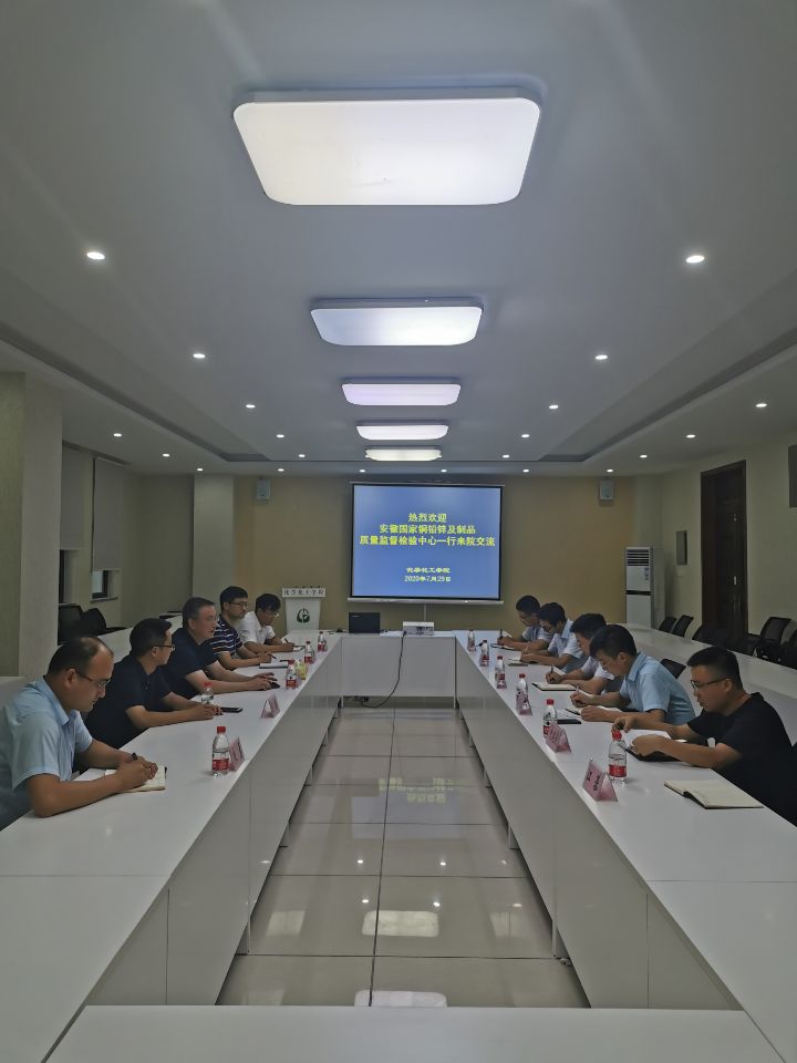 7月29日下午,安徽国家铜铅锌及制品质量监督检验中心主任夏锋一行五人前来太阳成集团122ccvip走访交流。经理方辉平,副经理李长江,实验实训中心主任和教研室主任参加了座谈。