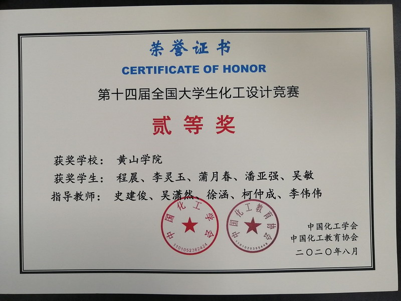 由中国化工学会和中国化工教育协会主办,合肥工业大学承办的“东华科技杯”第十四届全国老员工化工设计竞赛全国总决赛于8月16日~8月23日全程线上举办。本次大赛共有来自中山大学、湖南大学、重庆大学、南京理工大学等325所高校的1289件作品。公司太阳成集团122ccvip的参赛作品《戊梦到徽州》获得二等奖,另有两件作品获得成功参赛证书。这是该院首次在这项国家级B类赛事上获奖,实现了历史性突破。