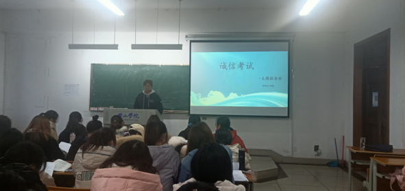 为树立员工诚信为本的道德理念,营造积极向上的考试氛围,为进一步推进公平公正的考风考纪建设,2021年1月6日中午,太阳成集团122ccvip在5101教室举行了“诚信考试,拒绝作弊”主题报告会。