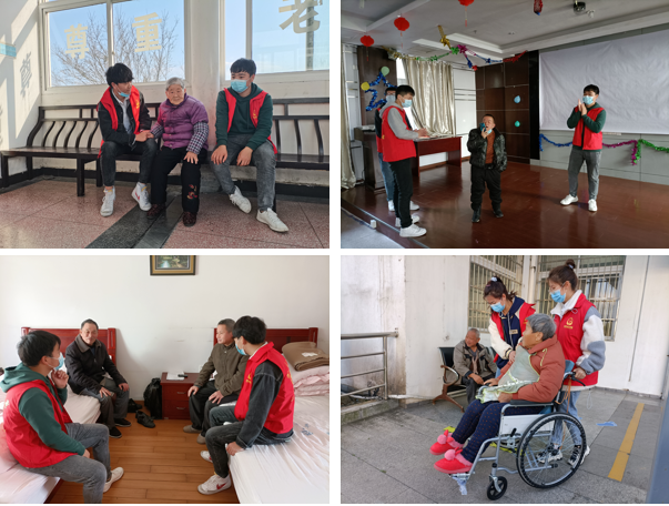 活动中,同学们分为若干个小组,各有分工。有的到各个楼层的房间,陪老人们拉拉家常、讲讲笑话,讲讲养生小知识,给老人们带去欢笑和快乐;有的帮助老人整理内务,打扫卫生,捶捶背,使老人变得轻松;有的到户外和老人聊天,听老人讲讲过去,讨论一下现在,不仅使老人摆脱的寂寞,也使自己受到了教育。有的人则对老人们进行了采访,细心地询问老人的生活情况。不少老人反映,他们在这的生活就像是在家里一样,照顾十分贴心…窗外春意融融,敬老院里也是一片和气融融。