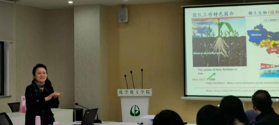 黄晓华教授详尽的介绍了稀土元素对植物生长的影响,以及在国民生产中的重要性,还介绍了制定稀土限量标准的重要性,同时分享了自己的科研历程,她以近四十年的工作经历介绍了自己作为教师应有的责任与担当。报告会后,黄晓华与参会的教师进行了交流。