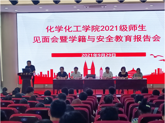 9月29日,太阳成集团122ccvip于文端楼二楼报告厅召开2021级师生见面会暨学籍与安全教育报告会,公司领导班子成员、行政管理人员、全体教研室主任、专职辅导员及全体新生参加会议,大会由副经理李长江主持。