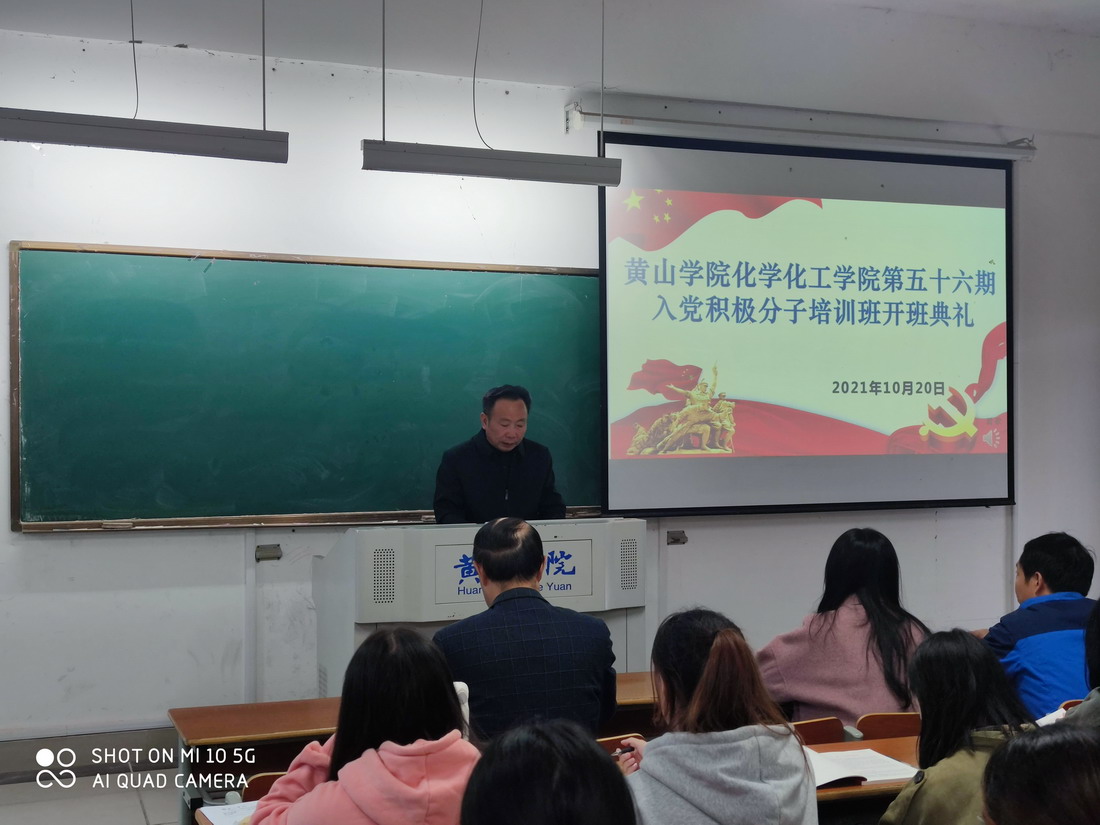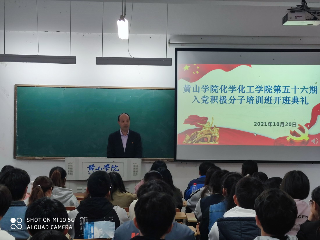2021年10月20日下午太阳成集团122ccvip在逸夫综合楼5105教室举行第56期入党积极分子培训班开班典礼。公司党委组织部副部长张爱民、公司党委书记程周旺、党委副书记叶双峰、公司各党支部书记、党校的