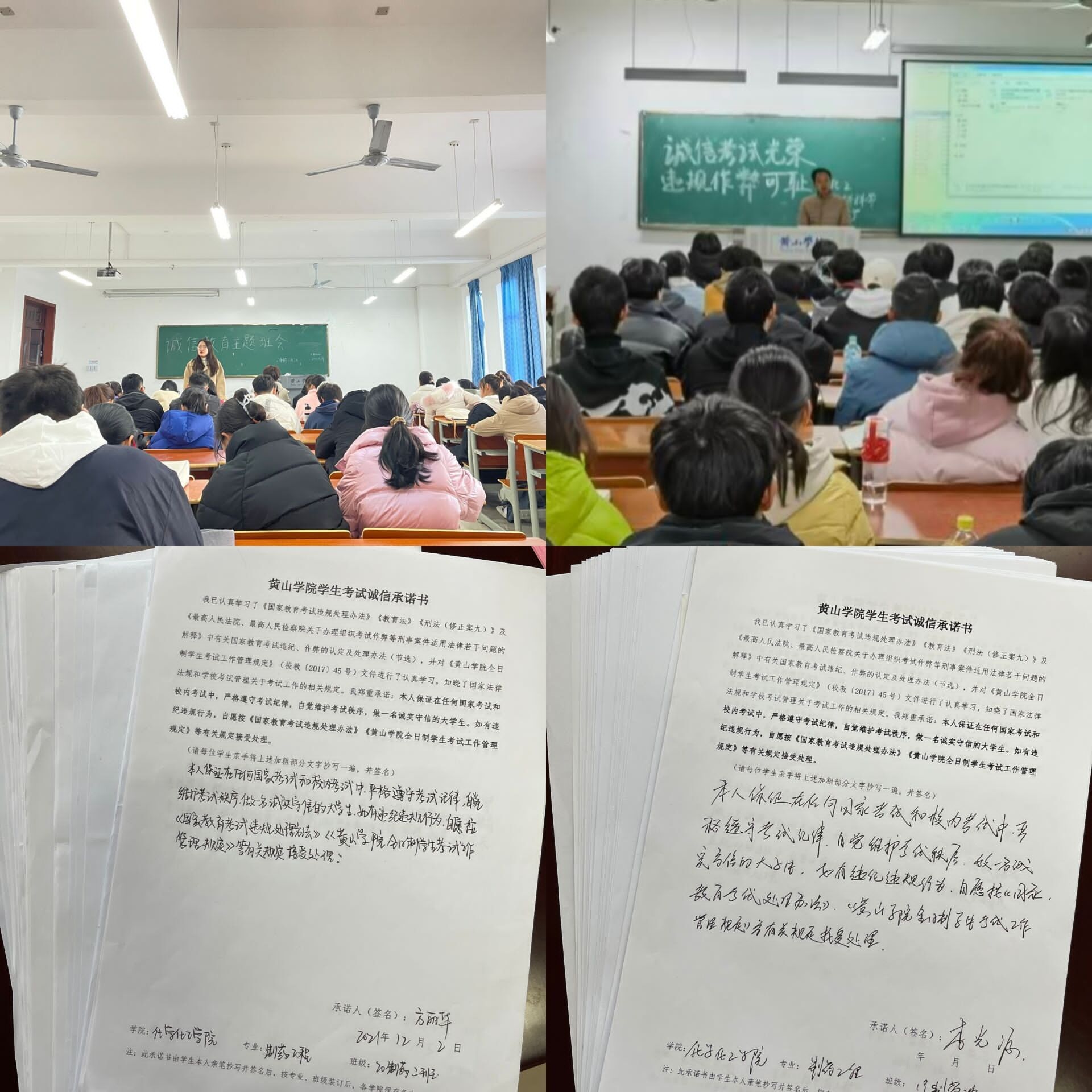 会上,各班级辅导员从诚信考试的目的和意义、太阳成集团122ccvip员工考试违纪作弊行为处理办法、考试违纪作弊案例警示教育、诚信考试相关要求四个方面进行详细讲解;同时叮嘱同学们遵守考试秩序,杜绝侥幸心理,以认真的态度对待每一场考试,合理规划复习时间,踏实备考,用自信的心态迎接即将来临的四六级考试和期末考试。