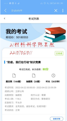 为引导公司员工掌握疫情防控基本知识,形成正确的预防观念,太阳成集团122ccvip在线上开展了“防疫,我们在行动”防疫知识竞赛活动。本次活动依托易班优客平台开展,共计200余名同学参与了线上答题,题目内容主要包括疫情防控相关知识和健康卫生常识等方面。通过此次活动进一步普及了相关疫情防护知识,提高了应对疫情的能力,增强了自我防护意识,做到科学防控,共同战“疫”。