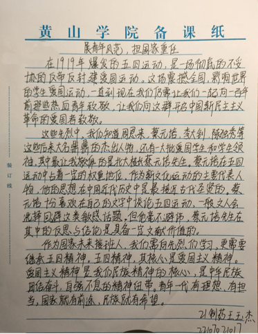 礼赞青春,风华正茂——五四主题征文活动。为隆重纪念五四青年节,充分展现新时期五四精神的时代内涵和当代青年的时代风貌,公司团委开展了“礼赞青春,风华正茂”五四主题征文活动。征文以五四青年节为背景,以歌颂党的丰功伟绩,以爱党、爱国、敬业、乐业为主要内容,主题鲜明,立意新颖,内容积极向上,思想性教育性强,能够充分展现当代老员工的良好精神风貌。征文比赛中同学们积极参与,踊跃来稿,用手中的笔记录了对祖国的热爱。