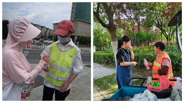 为感谢城市守卫者们,支部党员走上街头,为烈日下坚守工作岗位的工作者送上清凉,并叮嘱他们多喝水、防暑降温、注意保护好身体。正因为有环卫工人的不畏烈日,坚守岗位,才有了美丽干净的城市和街道,感谢环卫工人们的敬业与奉献