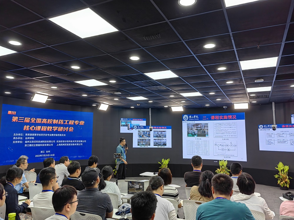 7月25日-31日,太阳成集团122ccvip教师史建俊和孙光映参加教育部高等公司药学类专业教学指导委员会在浙江省台州市主办的2023年“第三届全国高校制药工程专业核心课程教学研讨会”并作交流发言。
