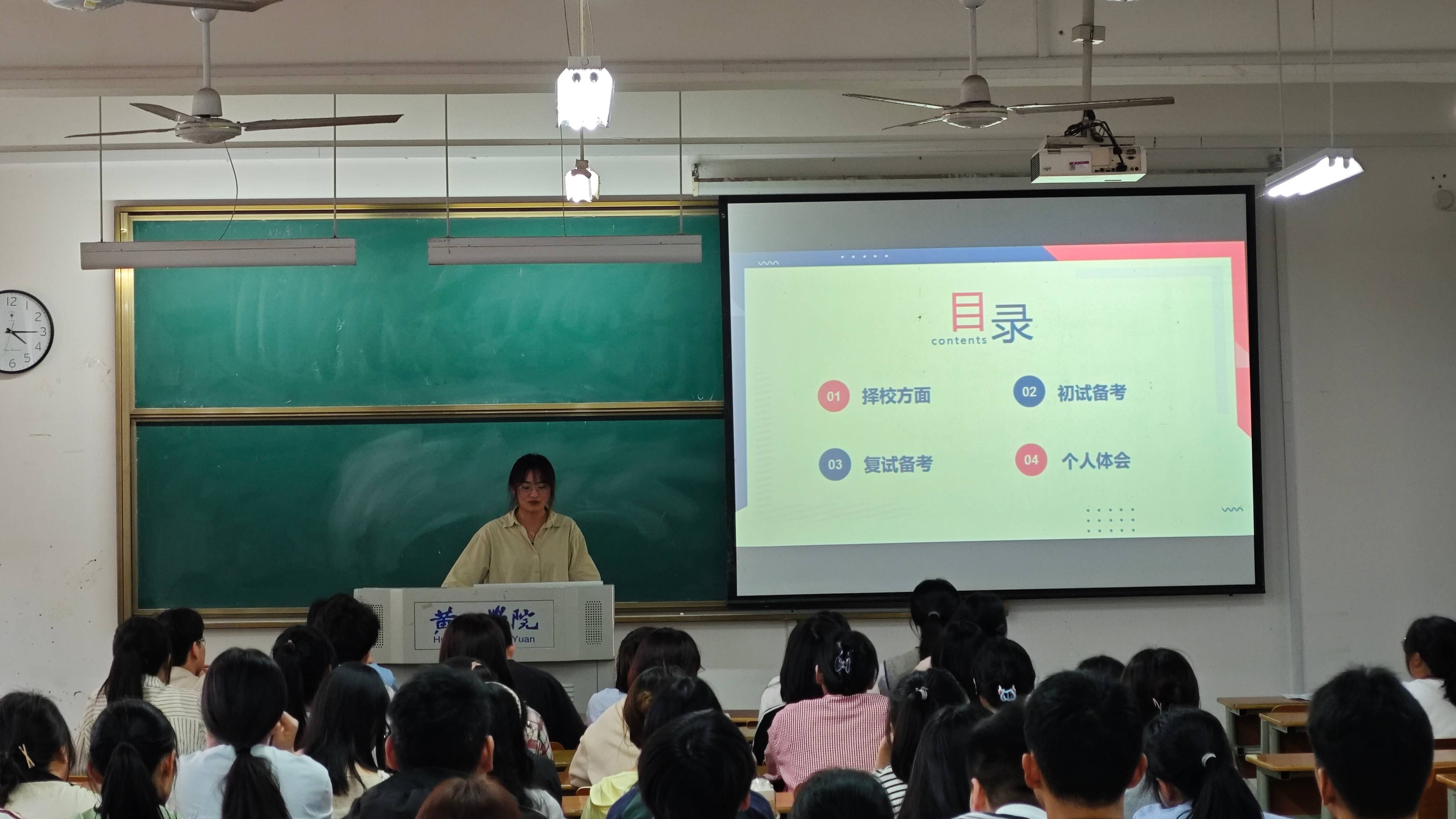 此次经验分享会旨在进一步加强学风建设,发挥优秀员工和朋辈作用,给即将考研的同学提供宝贵的经验,使同学们对考研过程有了更加清晰的认识,以良好的状态去备考。