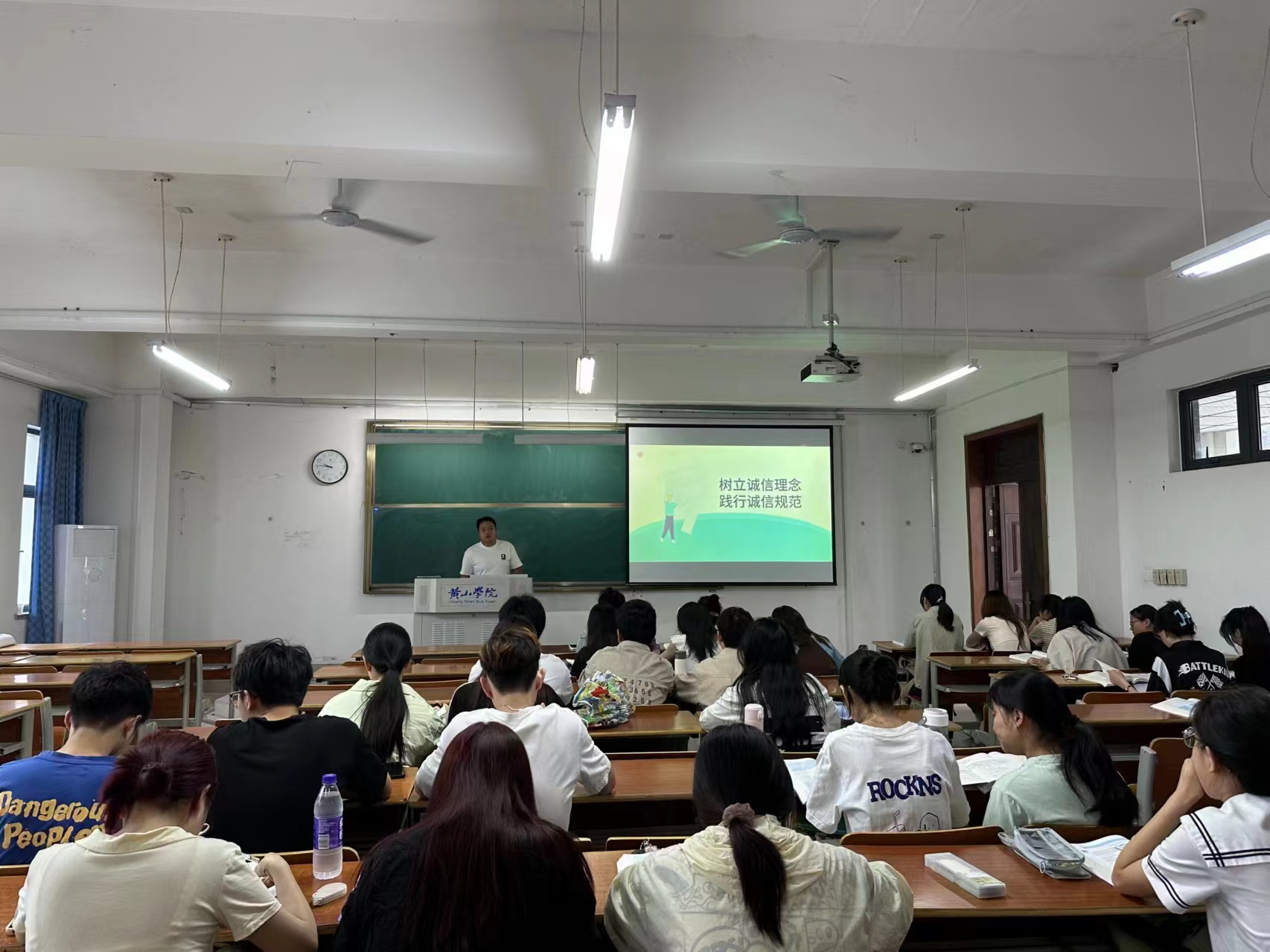 班会伊始,各班辅导员带领员工们学习了国家教育考试中考试违纪、作弊的认定及处理办法(节选)和员工手册中相关条例,并通过案例学习和观看警示教育宣传片,强调诚信考试的重要性和考试作弊的不良后果,给员工敲响警钟,告诫员工严格遵守各项考试纪律,杜绝违纪作弊,要求员工务必诚信考试,不抱侥幸心理,坚决不触碰违纪高压线。