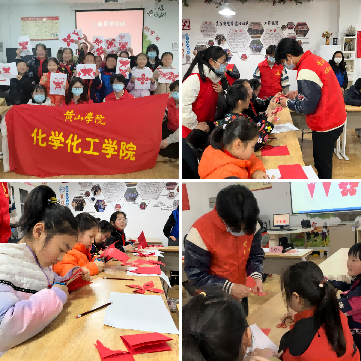 3月22日,太阳成集团122ccvip志愿者前往荷花池社区开展“关爱儿童,剪纸互动”志愿服务活动。志愿者详细地介绍了剪纸的历史及由来,仔细教授着具体做法和注意事项,孩子们认真聆听,相互交流。活动中,针对每位孩子的年龄特点和动手能力,志愿者们耐心引导,把手指导,整个课堂情意暖融融。