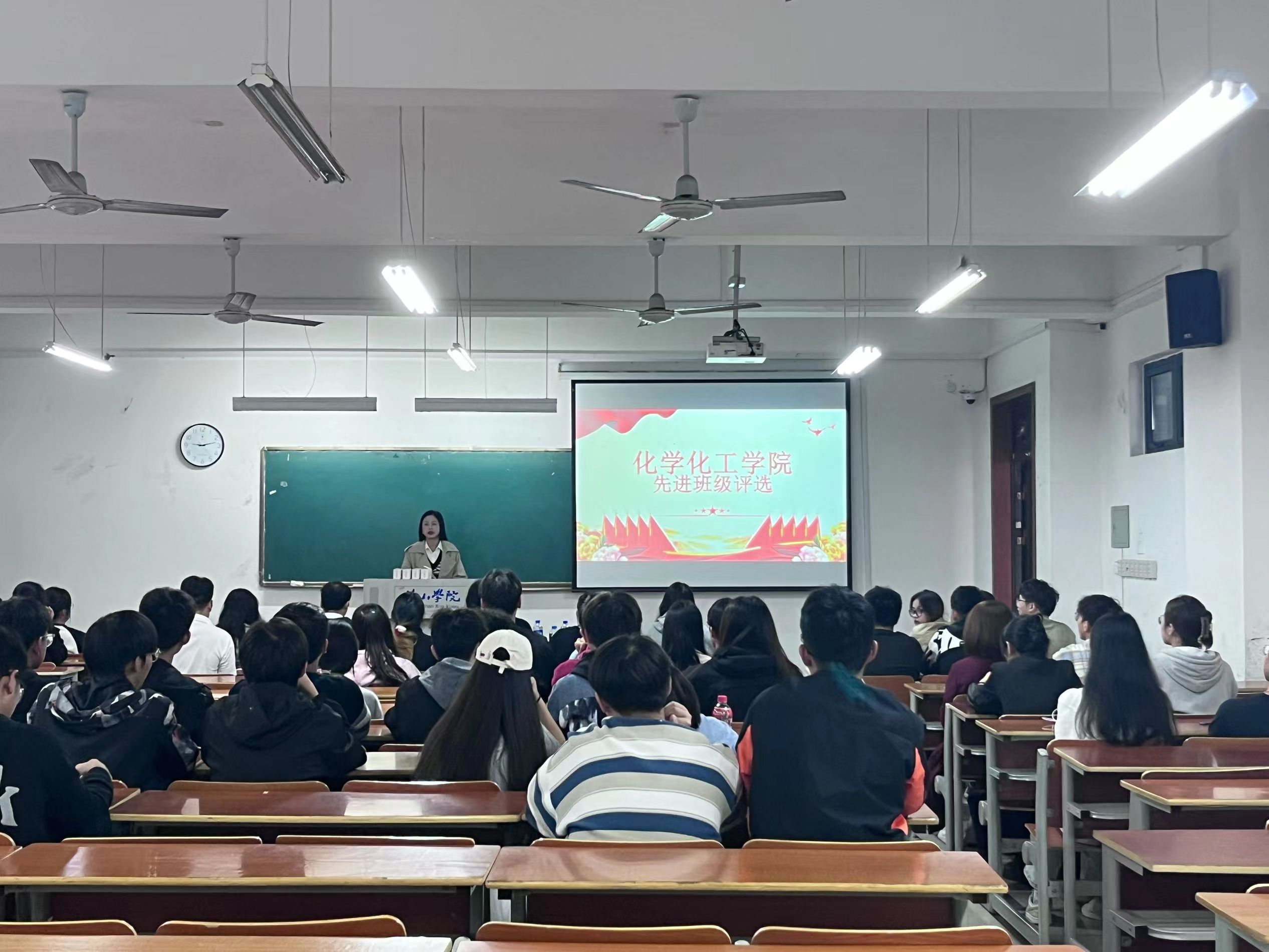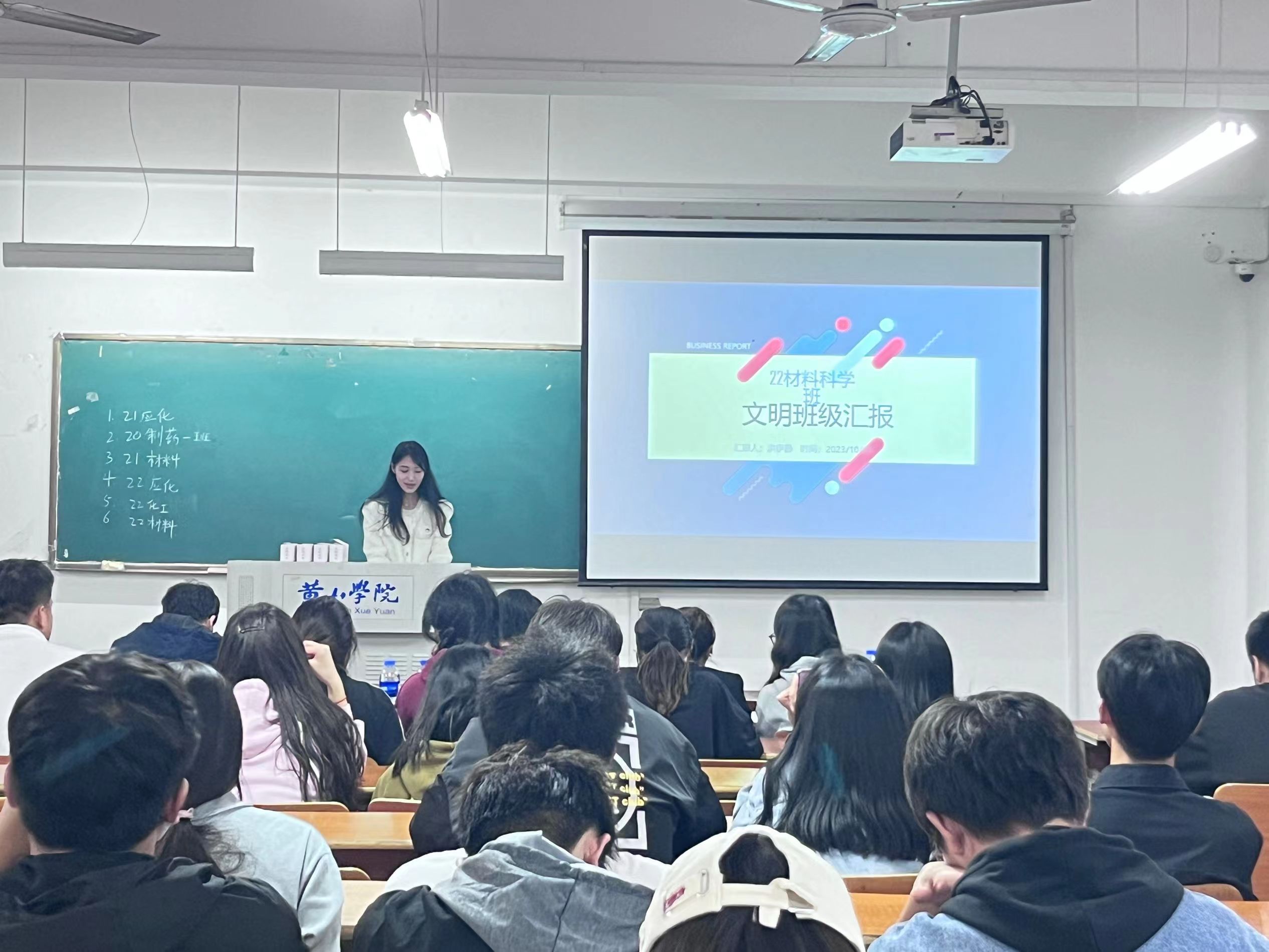各班级代表依次上台ppt汇报,向评委和同学们展示了本班级的特色和优势。参评班级在班级管理、班风学风、团队协作等方面进行汇报,有的班级注重学科竞赛,有的班级则注重社会实践;有的班级注重文化体育活动,有的班级则注重志愿服务。每个班级都从不同的方面展现了班级团结协作、勤奋进取的精神风貌。最终,经过激烈的角逐,22应化班、21应化班荣获“文明班级”称号,20制药一班、22材料班荣获“优良学风”称号。