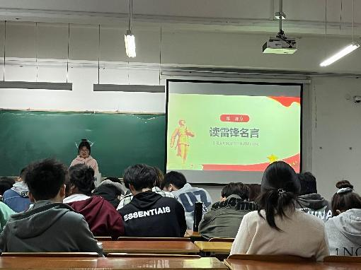活动现场,团支书首先以雷锋精神内涵为落脚点,从雷锋事迹和实践活动展开描述,通过幻灯片演示和视频分享的形式,引导同学们对雷锋精神的时代价值的思考和认识,重温雷锋同志的英雄事迹。而后,同学们分享了雷锋精神的事件,从这些平凡的事件中发掘雷锋精神的时代特征,并交流了自己的感悟。
