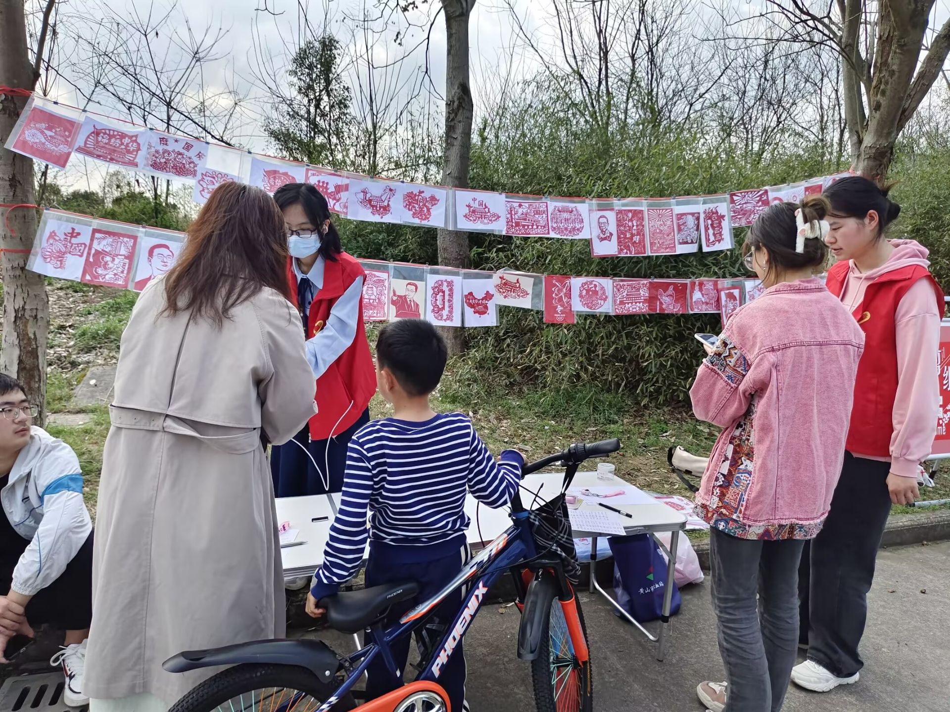 为激起同学们对传统文化剪纸的热情和积极性,3月24日剪纸协会在率水校区排球场旁举办了一场别开生面的“纸上天裁,我与剪纸有个约”主题活动,共200人参加。