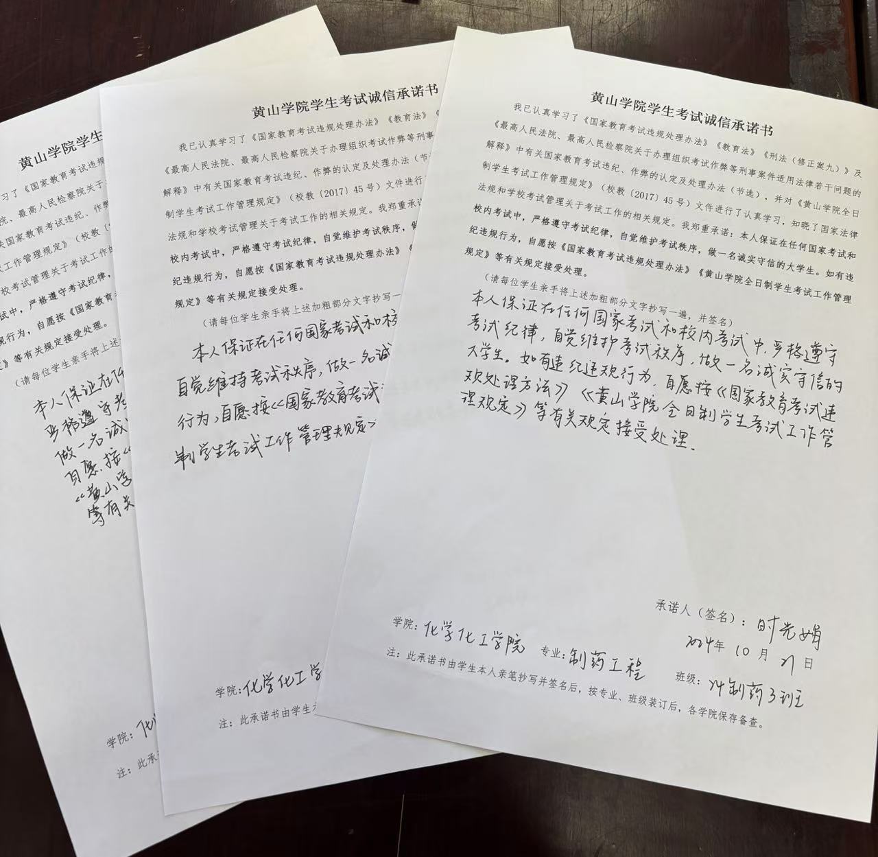 班会上,各班级辅导员结合典型案例,通过组织观看警示教育宣传片,讲解考试违纪违规的后果和不良影响。同时带领全体同学学习了《国家教育考试违规处理办法》,确保每位员工完全知晓并理解考场纪律相关规定,引导同学们增强守纪意识,规范文明考试行为。会后,组织员工集体签署“诚信考试承诺书”,表达自己遵守考试纪律、拒绝作弊的决心。大家都郑重承诺,将严格遵守考试规则,自觉维护考试秩序,考出真实水平,展现太阳成集团122ccvip员工的良好风貌。