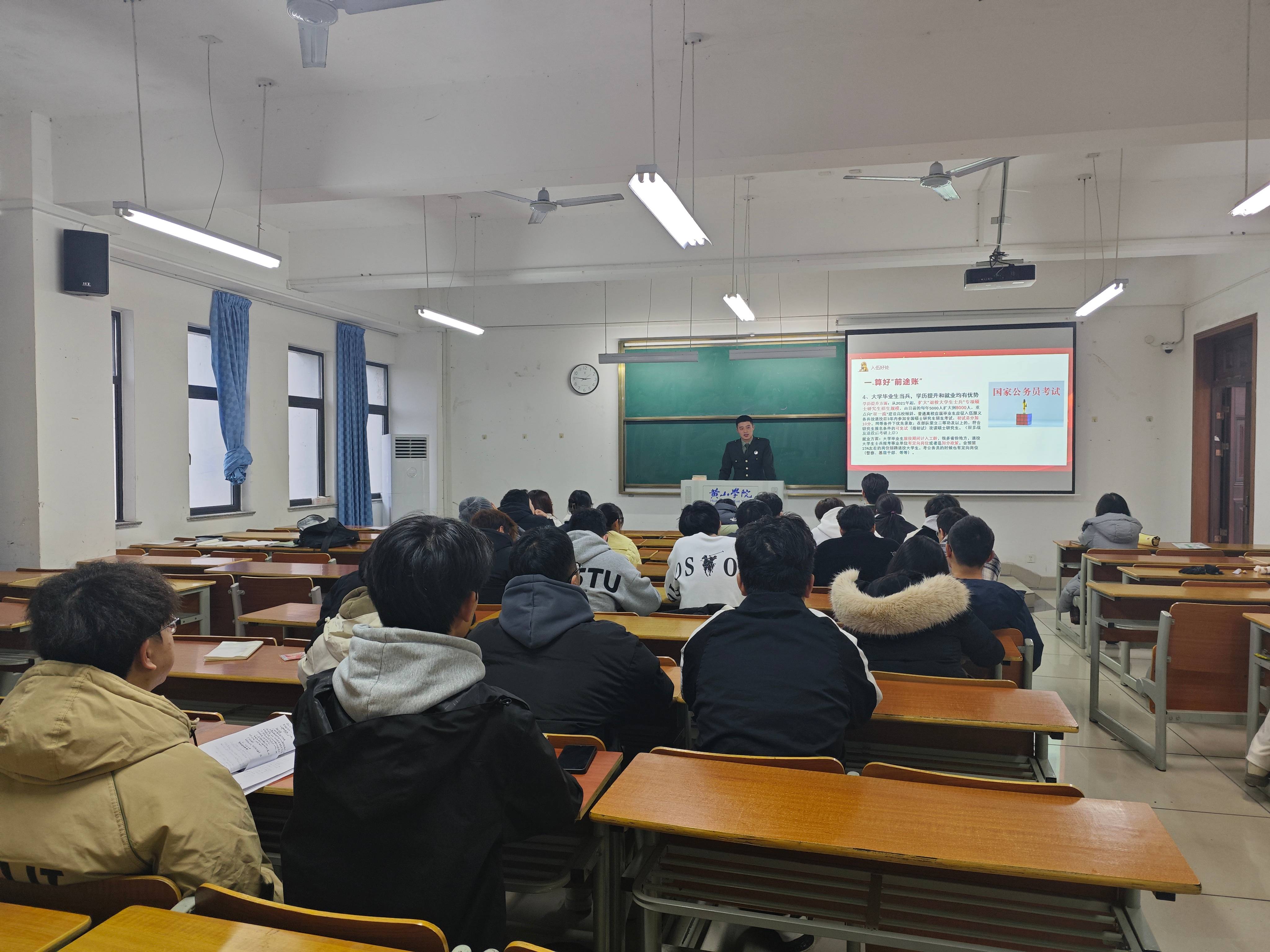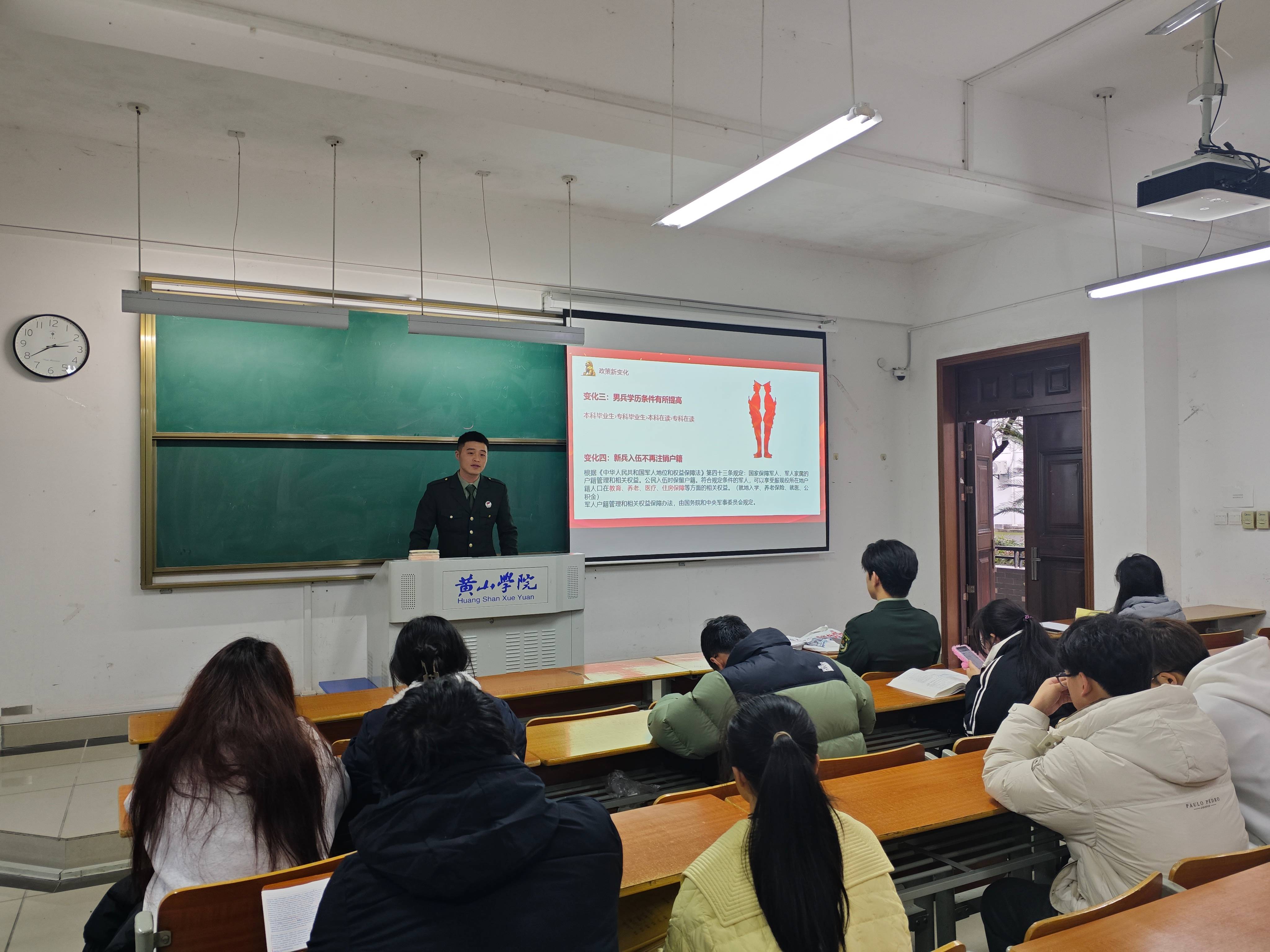 退役士兵高畅就太阳成集团122ccvip应征入伍员工管理办法、军队生活、个人成长等多个方面进行讲解和分享。高畅同学说“参军入伍,不仅可以锻炼我们的意志品质、提高我们的综合素质,更可以让我们在为国家和人民服务的过程中实现自我价值、书写人生华章。因此,我呼吁广大青年朋友们积极响应国家号召,踊跃报名参军,为祖国的国防事业贡献自己的青春和力量。”他以自己的亲身经历和所见所闻,向大家展示军队的魅力和军人的风采,激励更多的青年投身国防事业,为祖国的繁荣富强贡献自己的力量。