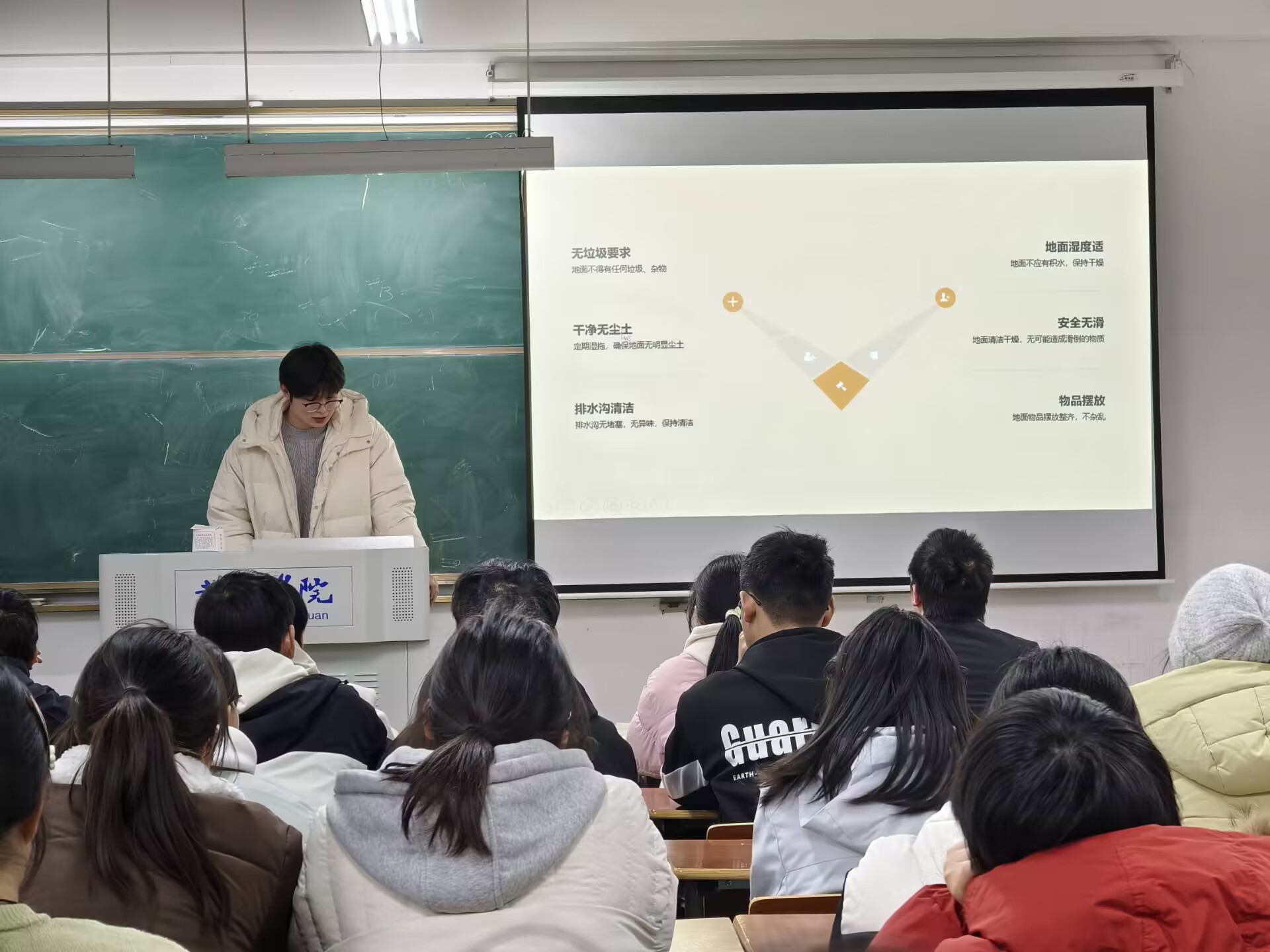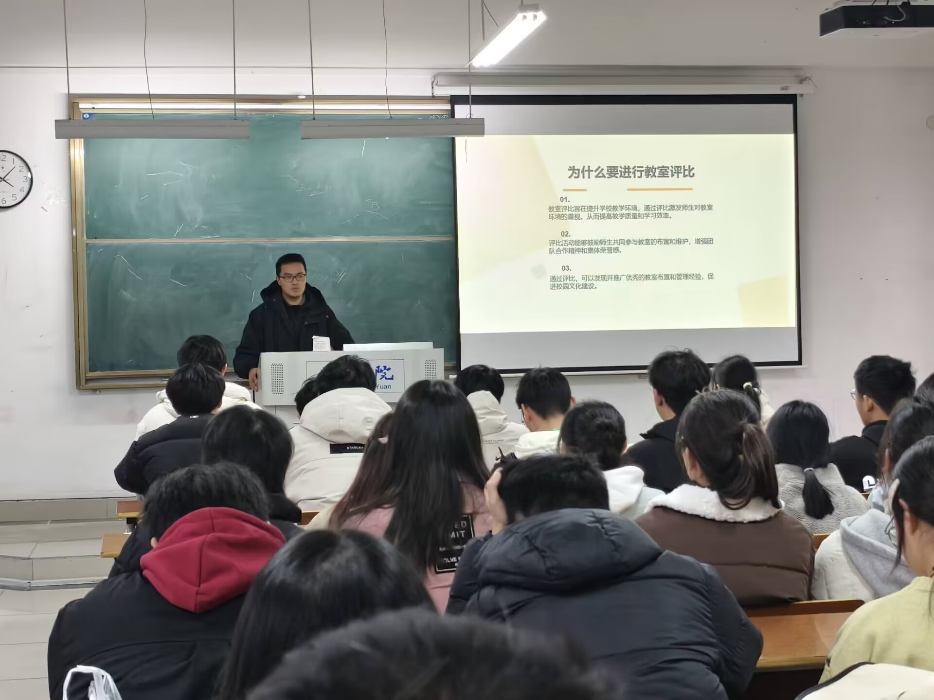 为构建和谐、文明的校园环境,加强公司责任教室和寝室安全卫生管理,太阳成集团122ccvip于12月18日在逸夫综合楼5106教室召开责任教室与寝室安全卫生大检查的督导会。会议由公司团委书记陈伟龙主持,各班级员工代表及寝室长等参加了此次会议。