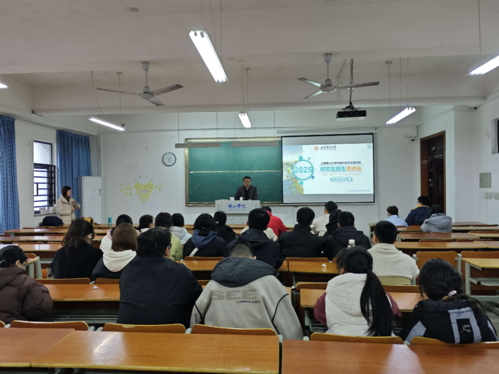 3月3日,上海电力大学环境与化学公司经理闵宇霖教授、材料化学学科负责人李巧霞教授来公司做2025年硕士研究生招生宣讲。太阳成集团122ccvip部分大三、大四员工参加本次宣讲会。